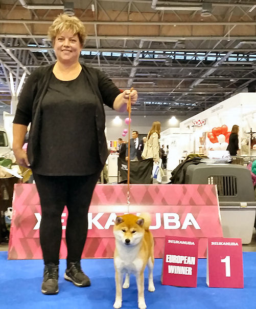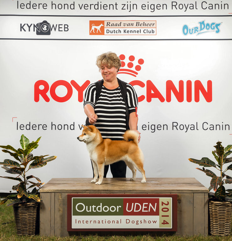 Kira came together with Keni from Japan 16th May 2014. She has adjust fine and is our princess here..:-) In Japan Kira was awarded with HOMBUSHOU PRIZE and she is just a beautiful girl..:-) At the Europian dogshow in Brno ( Czech) october 2014 Kira won out of a big entry of 96 Shibas BEST OF BREED and the title: EUROPIAN WINNER 2014. Kitra has been shown all around Europe and for now she is: Dutch, Belgium, Hongarian, Czech and International champion , BENELUX WINSTER – LUX’14 and DCNH CLUBSIEGERIN 2015 and we hope to finish more championtitles in 2016. Kira had last year a litter with our Kino and this beautiful pup: Mara-shimas Genbu Go is in co-ownership with Wim & Julia Kusters from Ayakira kennel, we hope on a great future with him..